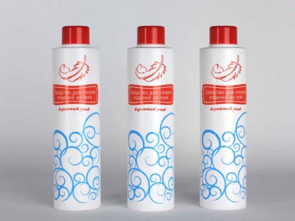 На фото – приклад спеціального рідкого засобу для прання виробів з пуху