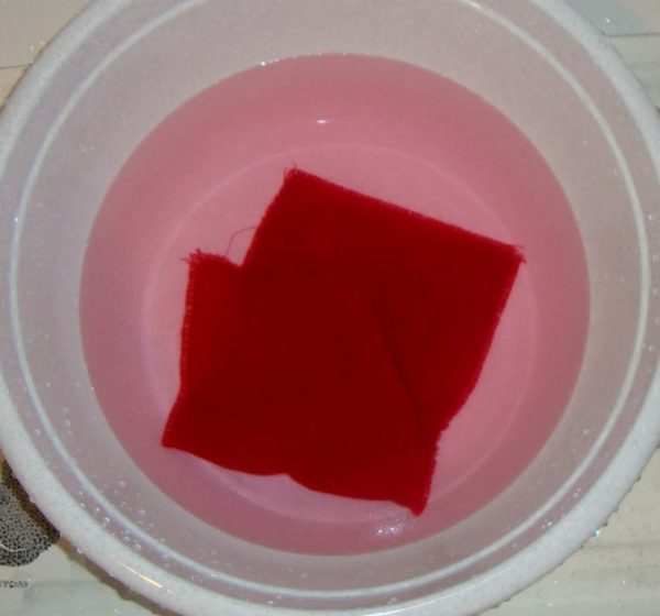 Якщо серветка забарвилася — річ злиняє навіть при пранні в 30 °C. Таке виперіть виріб своїми руками з додаванням оцту (3 столові ложки на 5 л води). Так колір не вымоется.