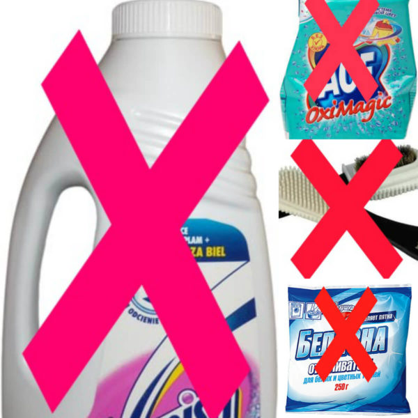 - В процесі прання категорично заборонено використовувати всілякі відбілювачі для тканини і грубі щітки для чищення.