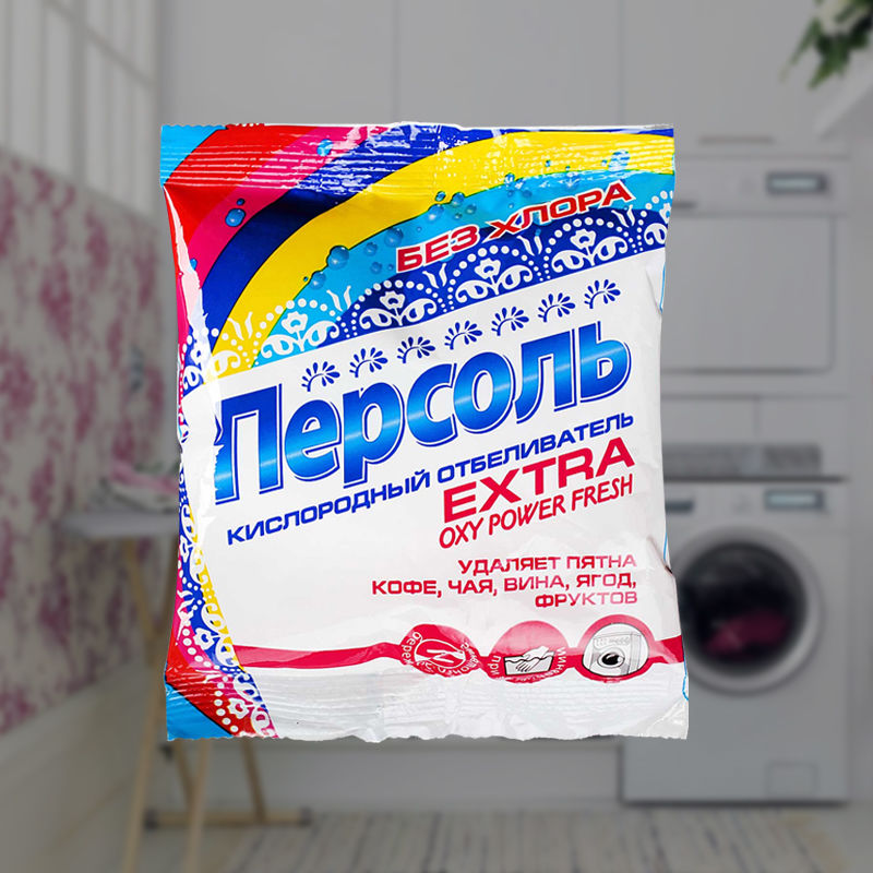 - Кисневий відбілювач з м’яким дією. ¼ Склянки кошти розведіть в тазику з водою і замочіть в ньому плаття на ніч. Вранці виперіть річ вручну.