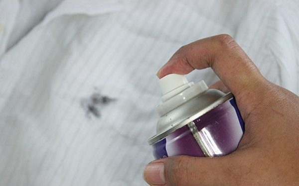 Для видалення лаку з одягу підійде репелент у формі спрею.