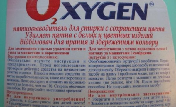 - Плямовивідник. Він допоможе відіпрати без сліду навіть старе пляма. Головне уважно вивчити інструкцію з використання засобу та суворо дотримуватися зазначеної в ній дозування. Рекомендую віддати перевагу речовинам, у складі яких міститься хлоринол і перекис водню – вони вважаються найбільш ефективними, а ціна їх приблизно така ж як і на інші очищувачі.