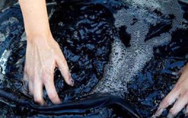 - Розведіть в тазу рідкий засіб, призначений для прання вашої тканини.
