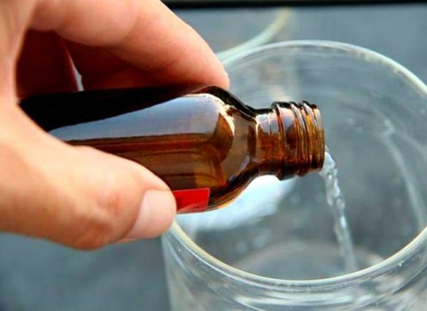 - Розводимо 1 ст. л. нашатирного спирту в склянці води. Замість нього можна використовувати звичайний столовий оцет, розведений водою навпіл.