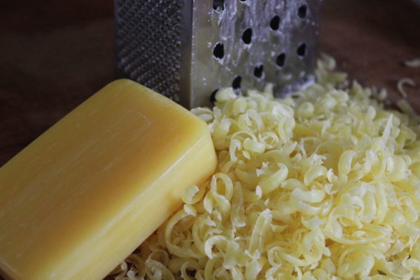 Натріть мило на тертці і покладіть натерті на шматочки забруднення