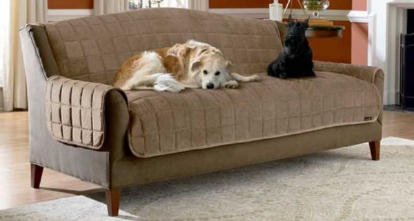 Якщо в сім’ї є домашні тварини, поверхні крісел і диванів треба закривати легкими накидками, які нескладно прати, адже робити це доведеться часто. Якщо у кішки або собаки є певне місце, і вони лежать тільки там, закривають красивою серветкою або покривалом тільки це місце. Під посуд для тваринного кладуть паперові рушники. Для збору шерсті з килима щітку змащують гліцерином.