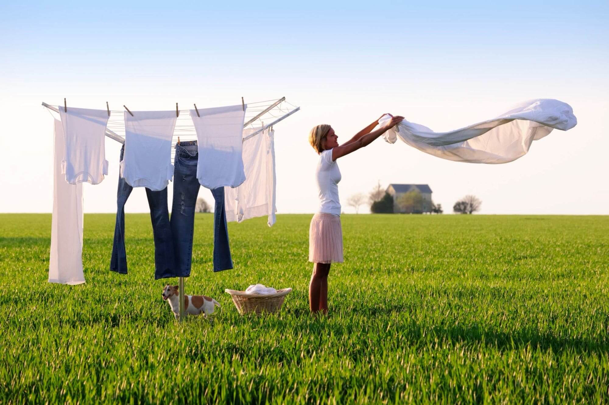 - Сонячні промені. Цей метод можливий тільки влітку в ясну погоду. Вивішена під прямим палючим сонцем, одяг висихає за 20 хвилин. Швидше процес завершиться за допомогою вітру: про скоротиться до 15 хвилин.
