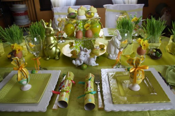 Залишився останній штрих – приємні декоративні дрібниці, які і створять святковий настрій. Новорічний святковий стіл можна прикрасити свічками, композиціями з ялинових гілок і шишок, на Великдень – гілочками верби і великодніми кроликами.