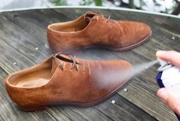 - Безбарвний або збігається з кольором взуття аерозоль від вологи і плям. Він дозволить легше усувати забруднення на поверхні і додасть матеріалу водовідштовхувальні властивості.