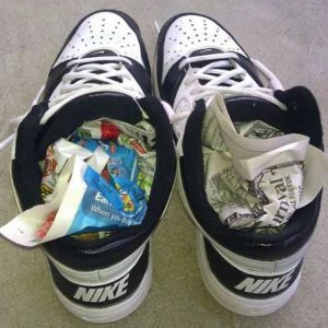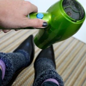 - Пропарити взуття над киплячою водою, наповнити її вологим папером таким чином, щоб форма взуття не спотворювалася. Потримати, поки повністю не висохне. При сушці не застосовувати нагрівальних приладів.