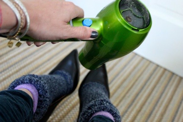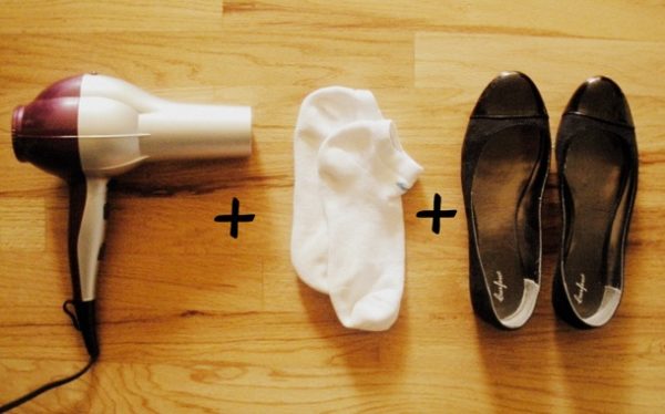 Розтягнути туфлі або черевики можна за допомогою фена. І в цей раз не обійтися без шкарпеток: