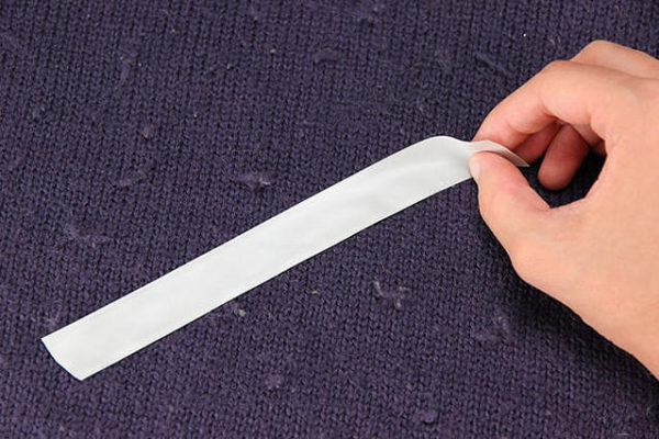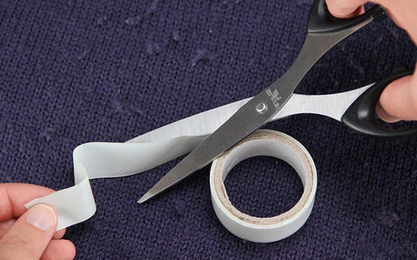 Після процедури на поверхні тканини залишаться шорсткості. Їх можна усунути скотчем. Просто приклеюйте його до виробу і різко відривайте – воно буде виглядати як нове!