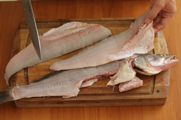 Плавці судака дуже гострі, і їх потрібно видалити в першу чергу