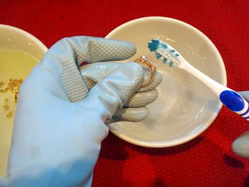 Після обробки очищаючим засобом прикраси промивають і висушують ганчірочкою
