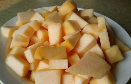 Очищені шматки гарбуза можуть бути використані для приготування страв або поміщені в холодильник для подальшого зберігання