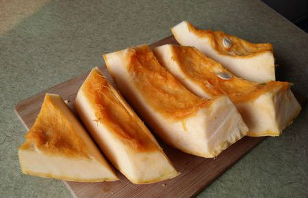 Розрізавши гарбуз на шматочки, ви зможете легко очистити її від шкірки