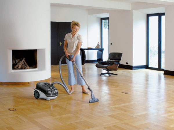 - Попередньо треба пропилососити підлогу, тобто застосувати сухе миття. Це відноситься до всіх дерев’яним покриттям. Адже пил в тріщинах і стиках вимити дуже складно, навіть користуючись самим ефективним чистячим засобом;