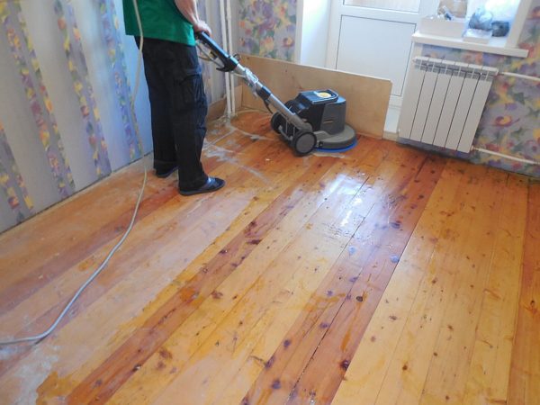- Пройтися пилососом, щоб повністю очистити дощатий настил від будівельного пилу. Тепер на ньому вже видно в’їлася бруд, а також плями від фарби, клею, штукатурки;
