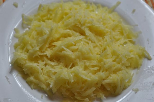 - Натираємо 1-2 картоплини на дрібній тертці.