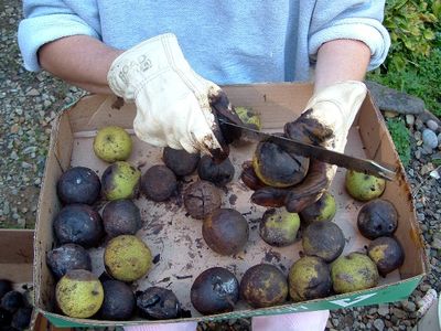 Щоб на шкіру потрапив сік шкірки, чистити горіхи потрібно в рукавичках