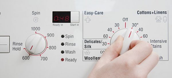 - вибрати оптимальний режим прання. В даному випадку можна встановити режим для делікатних тканин, або запустити програму, спеціально створену для прання виробів з бавовни або ручного прання;
