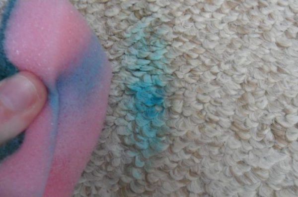 Для виведення плям зеленки з килимів використовують пральний порошок: кольорові поверхні рекомендується обробляти засобом з позначкою Color, а світлі — з відбілюючими речовинами.