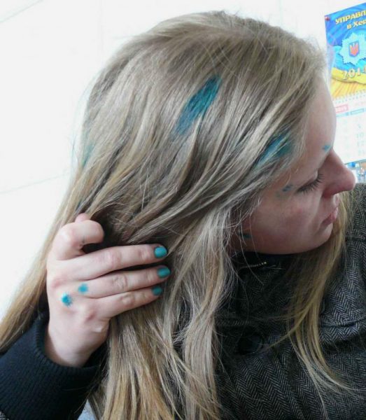 Іноді зеленка потрапляє на волосся, шкіру рук і інші ділянки тіла людини. Особливо часто таке відбувається при лікуванні дітей, хворих на вітрянку, коли висипання необхідно змащувати цим медичним препаратом.