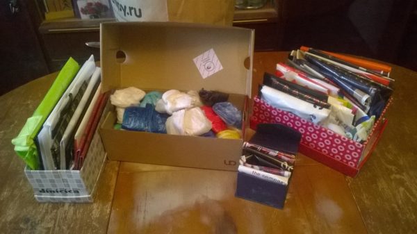 Як зробити коробку для пакетів самостійно? Вам знадобляться старі порожні упаковки, ножиці і клей: