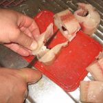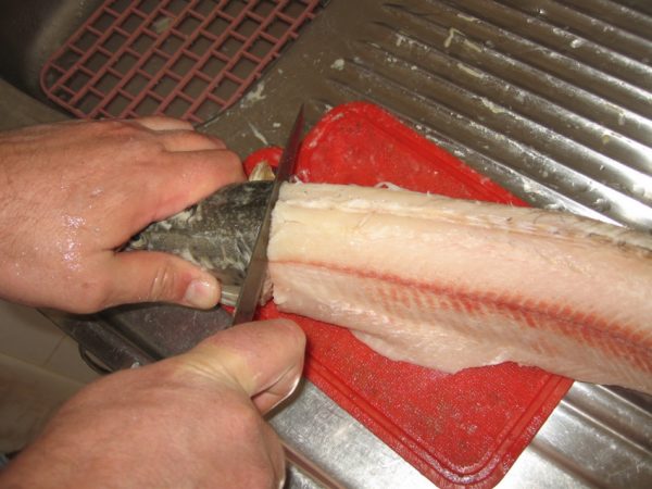 - Отриману «тушку» нарізати шматочками і акуратно відокремити філе.