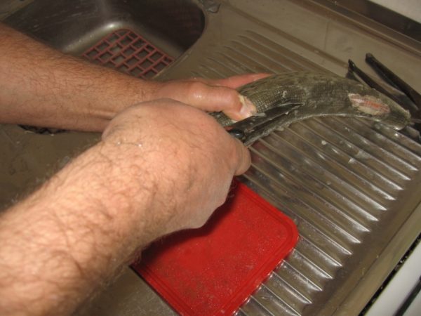 - Перед чищенням буде не зайвим промити рибу слід промити в солоній воді, щоб змити природне слиз, якою покрита вся тушка.