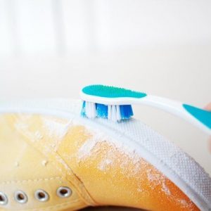 . Як безпечно відчистити народним способом білу підошву на своїх кедах. Намочіть ганчірку і насипте на неї невелику кількість харчової соди. Попередньо очистіть кеди від бруду і починайте відбирати підошву ганчіркою з содою. Обробивши підошву повністю, змийте залишки соди і залиште взуття сушитися.