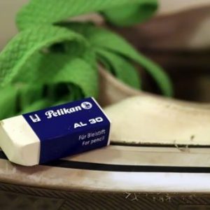 Останній спосіб призначений для екстреної легкої чистки. Як можна очистити колись білу підошву на своїх кедах коли зовсім немає часу? Ви вже зібралися кудись виходити і раптом помітили на підошві кед чорні смуги. Часу ні на один з попередніх шести способів немає. Можна, проігнорувати смуги і піти так, ну а можна швидко від них позбутися. Все що для цього потрібно, це канцелярська стірательная гумка. Зітріть чорні смуги так, як ви б стерли напис в зошиті. Можете пройтися по всьому периметру підошви — звичайно, білосніжною цей спосіб її не зробить, але трохи біліше вона стане.