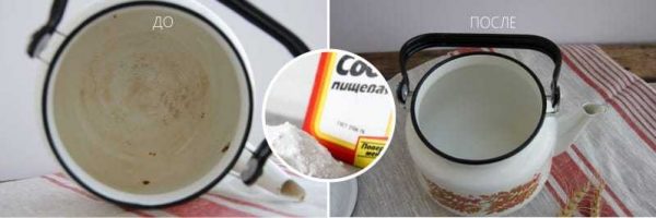 Прекрасний спосіб, ніж відчистити, заодно вирішивши проблему, як відбілити емальовану каструлю – це харчова сода. Дуже добре густий розчин соди знімає давній нагар.