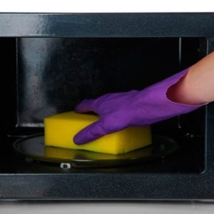 Замислюючись, як би очистити мікрохвильовку всередині, можна прийти до використання спеціальних засобів — спреїв, гелів, спеціальних рідин. Їх досить нанести на поверхні мікрохвильовій печі, потім протерти вологою серветкою і насухо.