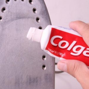 Зубна паста. Відомі чистячі властивості зубної пасти та зубного порошку можна використовувати і для усунення наслідків нагару на підошву. Для цього злегка нагрійте підошву і нанесіть на неї трохи пасти або зволоженого порошку і з допомогою тканини втирайте в глядящую поверхню. Для більш сильних забруднень можна використовувати стару зубну щітку з м’якою щетиною. По закінченні зніміть залишки пасти сухою серветкою і протріть підошву фланелевою тканиною.