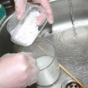 Хороший і швидкий спосіб, як відмити пригоріла посуд – це луг для чищення каналізації. Так ви зможете позбутися не тільки від нагару зовні, але і повністю вичистити дно сковорідки.