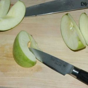 Цей метод набагато безпечніше хімічних чистячих засобів і ніколи не викличе алергію. Просто поріжте м’якоть кислого яблука ножем, щоб виступив сік. Потім м’якоттю натирають посуд і залишають на годину. Через деякий час гар можна буде зняти губкою.