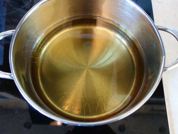 На дно чистої і сухої каструлі наливаємо тонкий шар рослинної олії