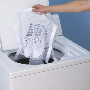 Для того щоб не допустити розпускання швів, потрібно помістити взуття в спеціальний мішок. Прати потрібно у воді, температура якої не перевищує сорока градусів. Якщо на кросівках є металеві або пластикові елементи, прати таку взуття в машинці не рекомендується.