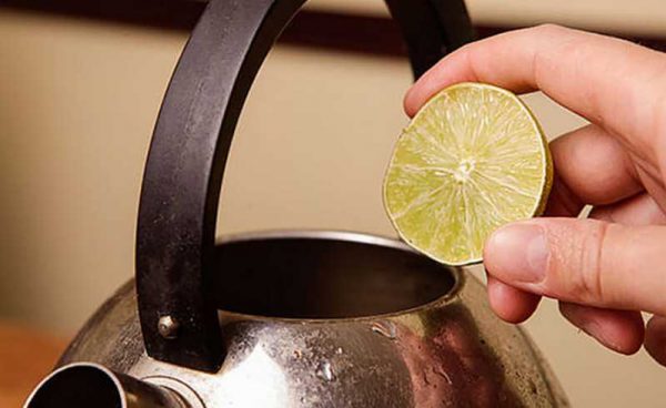 Можна використовувати сік лимона. З лимона видавлюють сік, додають його в воду і посуд кип’ятять протягом 10 хвилин.