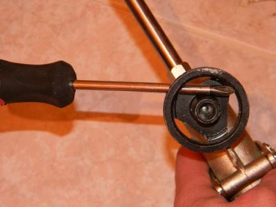 Використовуючи довгий саморіз, можна очистити штуцер балона від засохлої піни