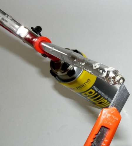 Залишки піни із зовнішніх поверхонь пістолета очищають з допомогою ножа