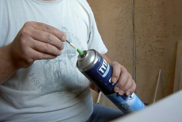 Після цього злегка натисніть на штуцер: якщо почуєте шипіння повітря, що виходить, балон придатний для подальшого використання — піна в ньому знаходиться під тиском.