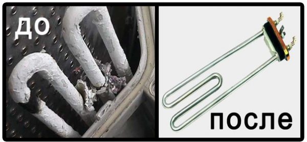 Ця деталь виконує одну з найважливіших функцій в пральній машині — гріє воду. Вона ж найбільше потерпає від жорсткої води, обростаючи накипом. Якщо часто прати при температурі понад 70 °C, то на Тені утворюється накип, що з часом стає серйозною проблемою. Потрібно більше енергії для нагріву, а значить, зростають витрати на електрику. На елементі утворюється щільний кожух, який в підсумку призводить до поломки машини. Щоб цього не допустити, ТЕН слід очищати від накипу. Періодичність залежить від жорсткості води і частоти використання машини, але не рідше 1 разу в півроку.