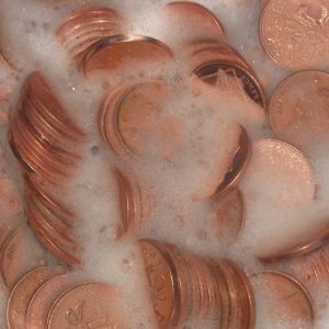 По закінченні монету обробляють мильним розчином і зчищають залишилася бруд за допомогою м’якої зубної щітки. Не завжди цей спосіб може допомогти з першого разу, тому процедуру повторюють. Розчин, що знаходиться в пластиковій ємності, замінюється новим, так як після однієї процедури рідина буде дуже брудною.
