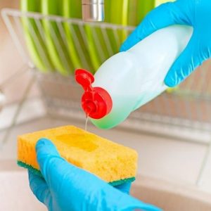 Приступаємо до роботи з поверхнею витяжки. На ній також скупчується велика кількість жиру. Тут все просто: застосовуємо миючий засіб і відмиваємо забруднення за допомогою губки. Засіб попередньо розчиніть у воді (у співвідношенні 1:4), опускайте губку у розчин і протирайте всі брудні ділянки. По завершенні процесу протріть витяжку сухою чистою ганчіркою так, щоб не залишилося ніяких розлучень.