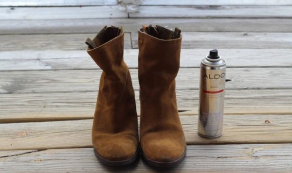 - Після висихання матеріалу, обробіть його захисним спреєм для замшевого взуття.