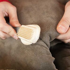 Після сушіння поверхню шкіри можна обробити з пульверизатора розчином оцту на воді. Це пом’якшить матеріал, якщо раптом він стане жорстким після простирывания. Можна злегка пройтися по замші гліцерином на воді – для м’якості.