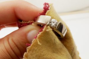 - Для виробів з білого золота необхідно використовувати м’яку тканину. Для додання такого кольору прикраси покривають родієм. Але з плином часу покриття має властивість стиратися. Щоб цього уникнути, необхідно серйозно підійти до питання догляду та очищення. Можна використовувати нашатирний спирт і миючий засіб.