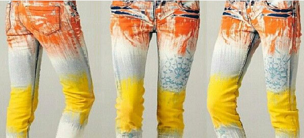 Джинси, пофарбовані акриловими фарбами, бажано прати вручну при температурі води 30-40 °C